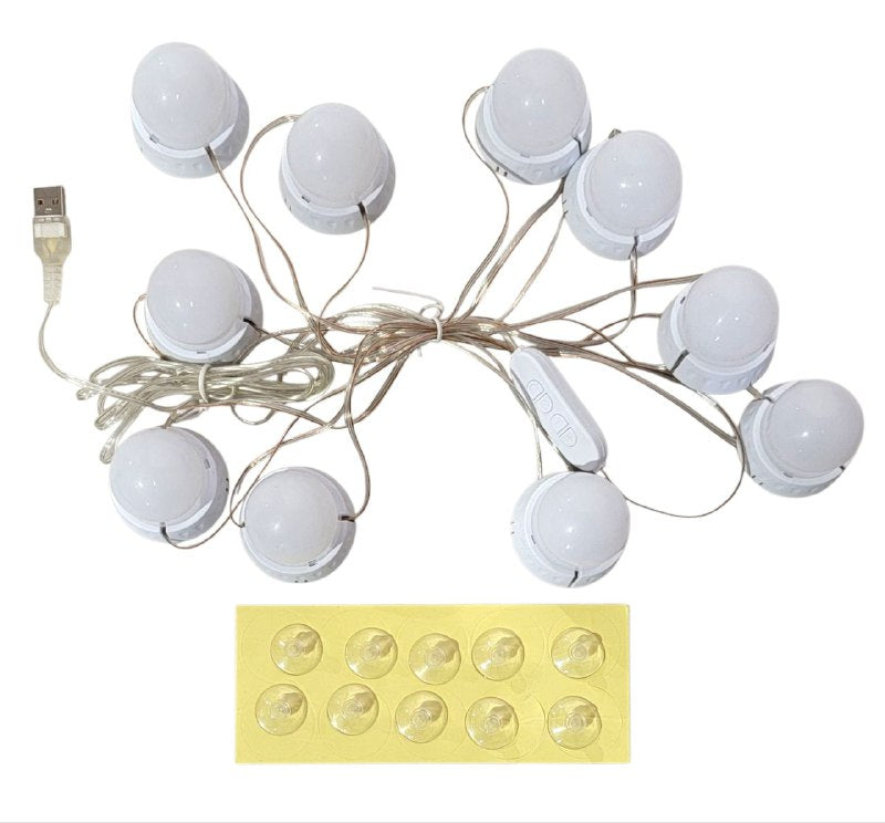 VANITY MIRROR LIGHTS LUCES LED PARA ESPEJOS DE TOCADOR,3 MODOS DE COLOR PARA ILUMINACIÓN DE ESPEJO,INCLUYE 10 BOMBILLOS FUERTE ADHESIVO PARA EVITAR QUE SE CAIGA,ENCHUFE DE ENTRADA USB