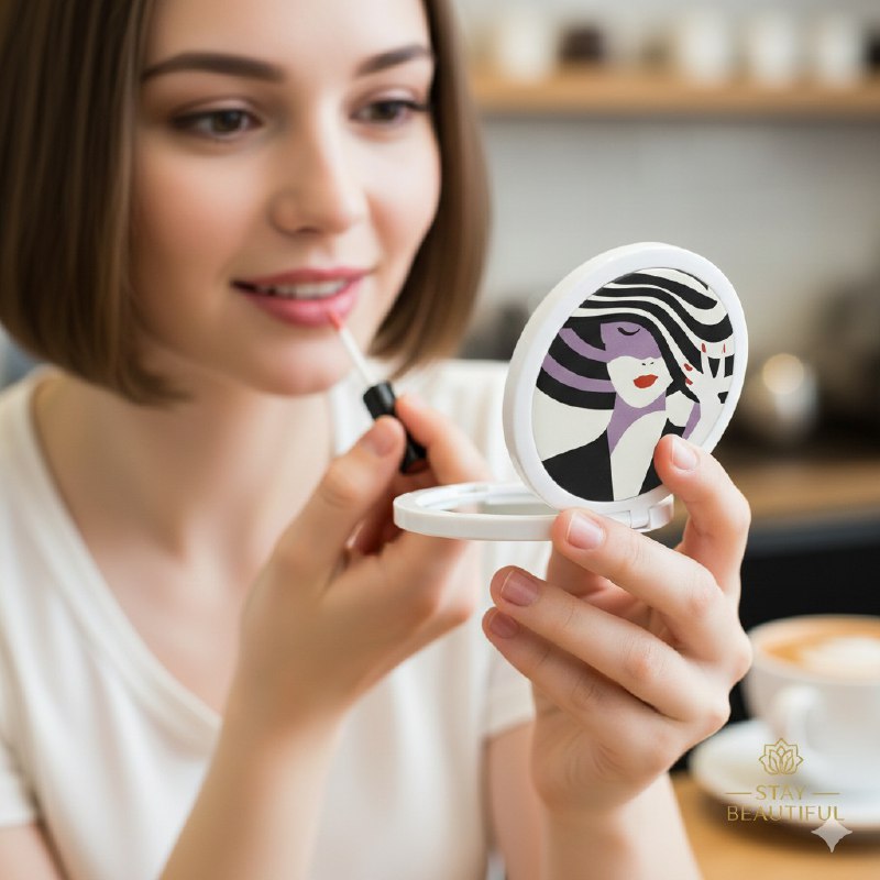 STAY BEAUTIFUL PORTABLE MIRROR, ESPEJO DOBLE PORTABLE, DISPONIBLE EN UNA VARIEDAD DE ESTILOS, REDONDO PORTATIL COMPACTO, PERFECTO PARA CARGARLO EN TU CARTERA, MOCHILA O GUANTERA DE TU VEHICULO, MEDIDA: 7.5X14CM