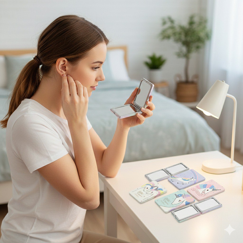 ESPEJO DE MANO COMPACTO CON DISEÑO DE UNICORNIO