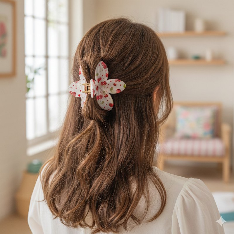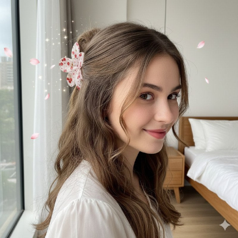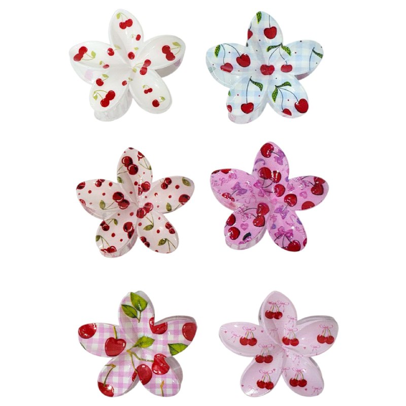 PAQUETE DE 12 GANCHOS EN FORMA DE FLOR CON DISEÑO DE CEREZAS PARA EL CABELLO,PINZAS DE SUJECION FUERTE,ACCESORIO PARA EL CABELLO, MEDIDA 7.5X7CM