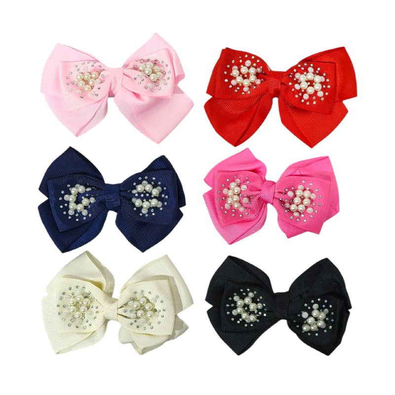 PAQUETE DE 12 GANCHOS PARA CABELLO EN FORMA DE MOÑO CON PERLAS, ACCESORIO PARA EL CABELLO DE TUS NIÑAS, CONBINA SUS PRENDAS CON ESTOS ADORABLES MOÑOS, DISPONIBLE EN 6 COLORES, MEDIDA 8x12CM