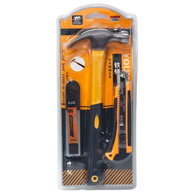 SET DE HERRAMIENTAS ESENCIALES YOUMEI: TU SOLUCIÓN COMPLETA PARA REPARACIONES DEL HOGAR. ESTE CONJUNTO COMPACTO REÚNE LAS HERRAMIENTAS BÁSICAS QUE TODO HOGAR NECESITA: MARTILLO DE GARRA VERSÁTIL, CUCHILLO DE CORTE DE PRECISIÓN PARA TRABAJOS DETALLADOS Y REPUESTOS INCLUIDOS. IDEAL PARA PEQUEÑAS REPARACIONES, MANTENIMIENTO Y PROYECTOS RÁPIDOS. DISEÑADO PARA SER PRÁCTICO Y ACCESIBLE, TE PERMITE RESOLVER PROBLEMAS COMUNES SIN COMPLICACIONES. COMPACTO Y FÁCIL DE GUARDAR, ESTE SET ES LA INVERSIÓN INTELIGENTE PARA TENER TODO A MANO CUANDO LO NECESITES.