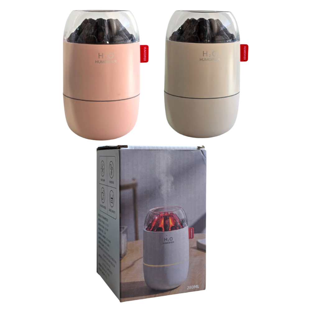 HUMIDIFICADOR H2O CON LUZ CÁLIDA QUE SIMULA UN VOLCÁN EN ERUPCIÓN, TRANSFORMA CUALQUIER ESPACIO EN UN REFUGIO DE PAZ Y FRESCURA, FUSIONA BIENESTAR Y DISEÑO EN UN FORMATO COMPACTO. 2 COLORES DISPONIBLES MEDIDA 14X9CM