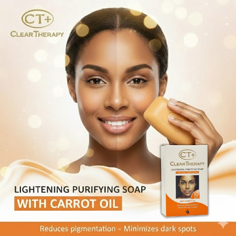 CT+ CLEAR THERAPY, JABÓN ACLARANTE PURIFICANTE, CON ACEITE DE ZANAHORIA, REDUCE LA PIGMENTACIÓN, MINIMIZA LAS MANCHAS OSCURAS, ENRIQUECE LOS ÁCIDOS DE LAS FRUTAS, LO QUE GARANTIZA LIMPIAR LAS IMPUREZAS Y LOS PIGMENTOS PARA UN BLANCO CLARO Y PERFECTO, ELIMINA MANCHAS OSCURAS DEJANDO LA PIEL LIMPIA Y BRILLANTE, CONT. 175g