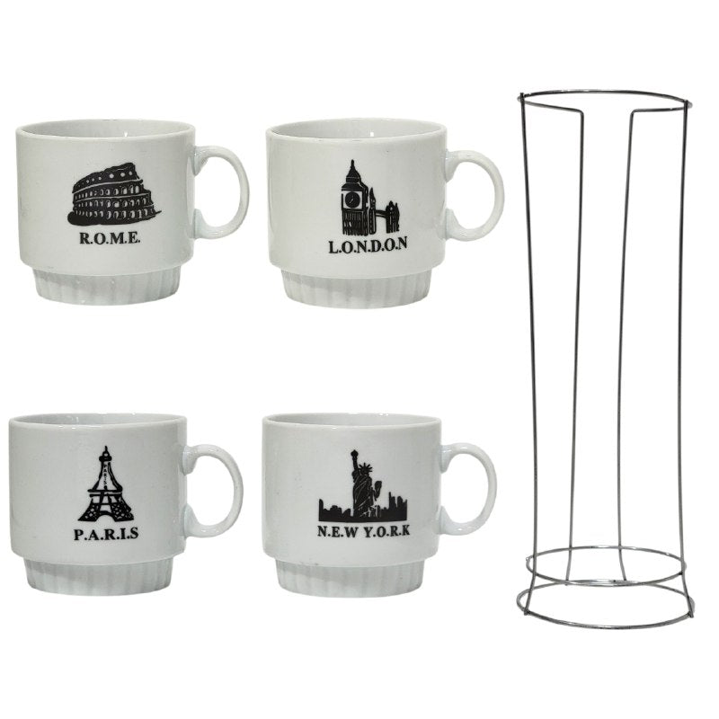 CASUAL DRINK & THINK SET DE 4 TAZAS PERFECTO PARA TU RINCON DE CAFÉ, CON DISEÑO MINIMALISTA, TAZAS DE CERAMICA TIPO SPECKLE LE DARAN UN TOQUE CHIC A TU COCINA, MEDIDA: 13X38CM, MEDIDA POR TAZA 9X9CM