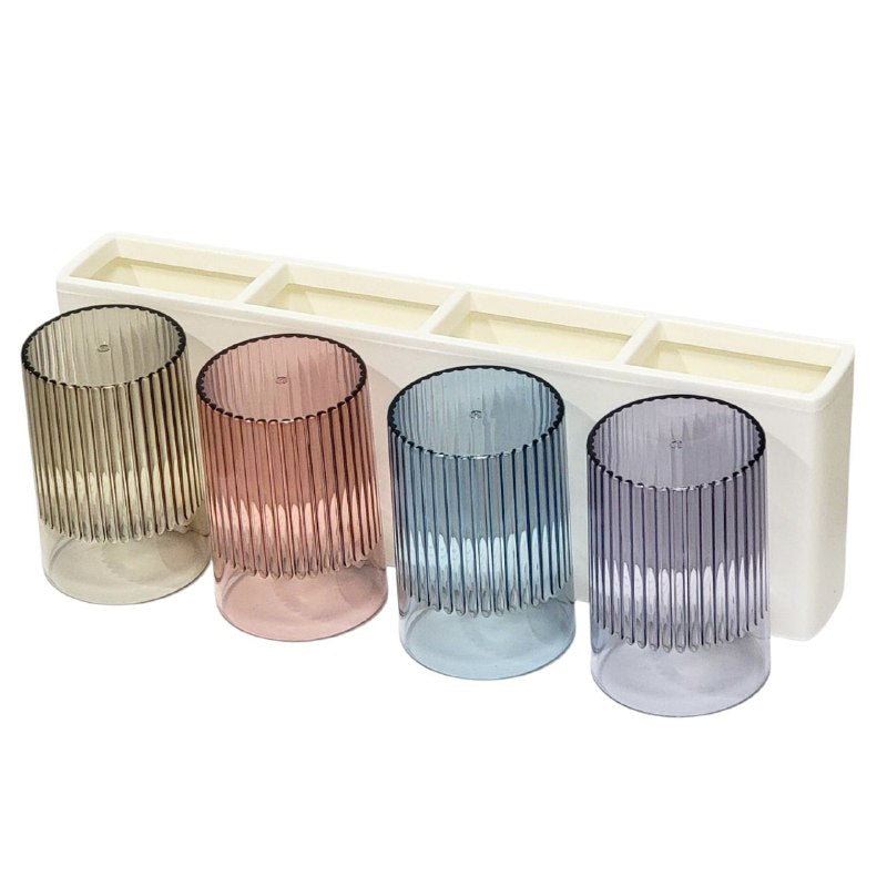 GOOD LIFE SOPORTE ORGANIZADOR PARA BAÑO CON DEPOSITO PARA CEPILLO DE DIENTES Y UTENSILIOS DE BELLEZA INCLUYE 4 VASOS PARA ENJUAGAR,FÁCIL DE TRANSPORTAR Y LIMPIAR MEDIDA 12X33X10.5CM
