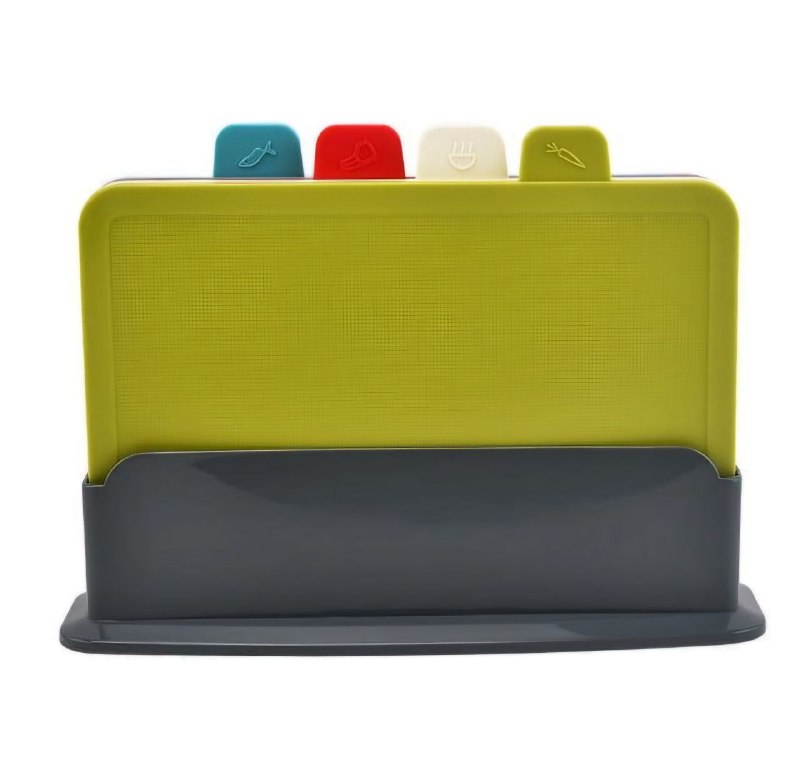 JUEGO DE TABLAS DE CORTAR DE 4 PIEZAS,DE PLASTICO DE GRADO ALIMENTICIO QUE NO ES TÓXICO,ES DURADERO Y ANTIDESLIZANTE,LAS TABLAS DE CORTAR CODIFICADAS POR COLORES AYUDAN A PREVENIR LA CONTAMINACIÓN CRUZADA,ESTUCHE DE ALMACENAMIENTO Y DRENAJE CON DOBLE FUNCIÓN