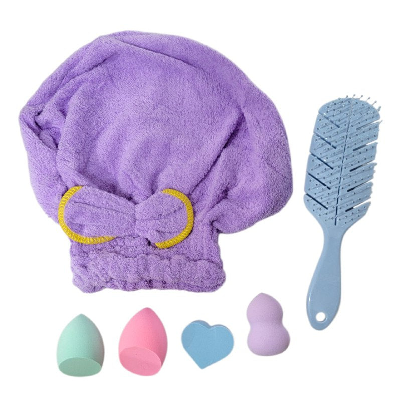 KIT DE CUIDADO FACIAL, GORRO, CEPILLO PELO Y ESPONJAS DE MAQUILLAJE KISS LOVELY, 5 COLORES