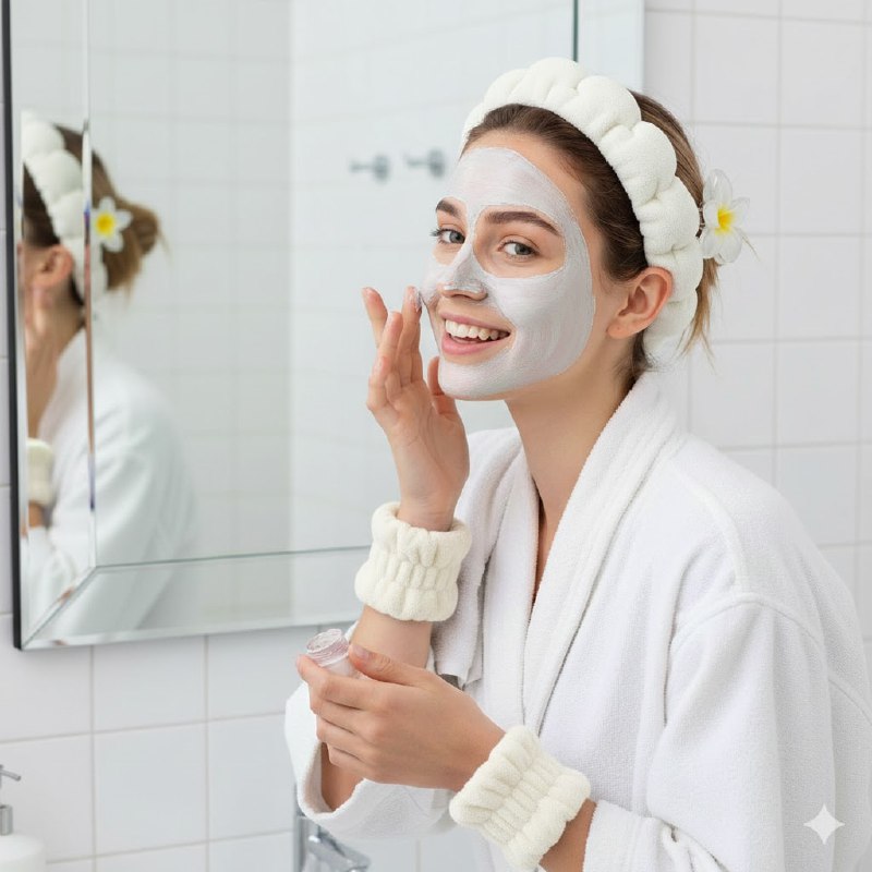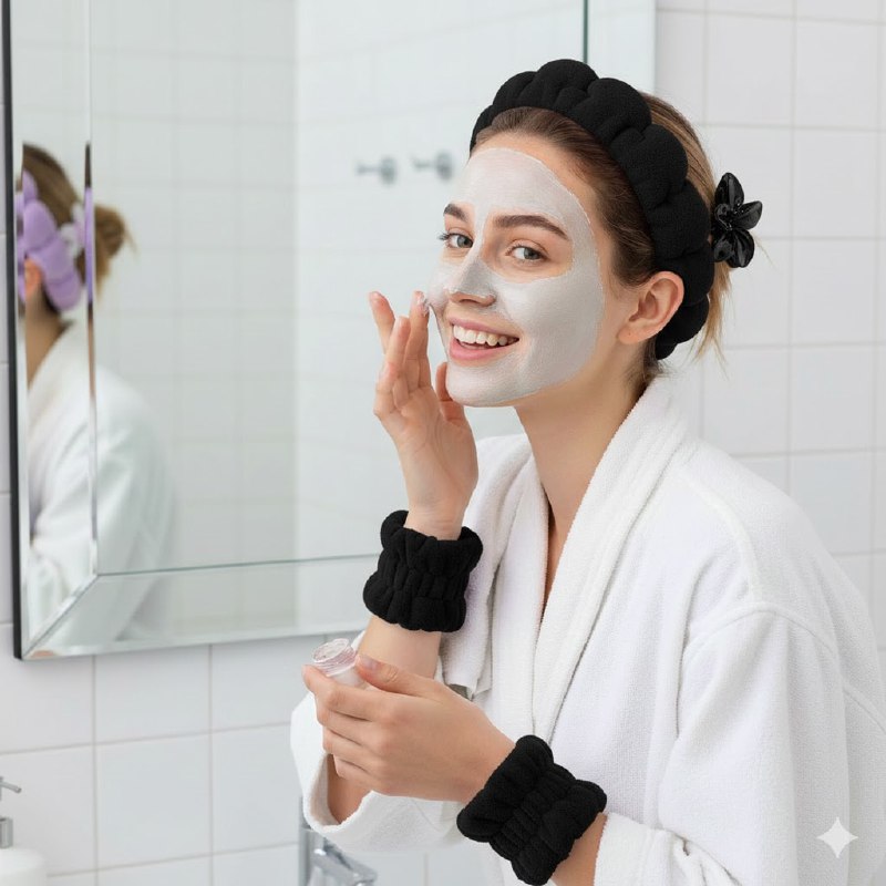 SET DE CUIDADO FACIAL INCLUYE GANCHO CON DISEÑO DE FLOR HAWAIANA PARA EL CABELLO, DIADEMA, Y MUÑEQUERA PARA SKIN CARE, MAQUILLAJE O SPA 6 COLORES DISPONIBLES