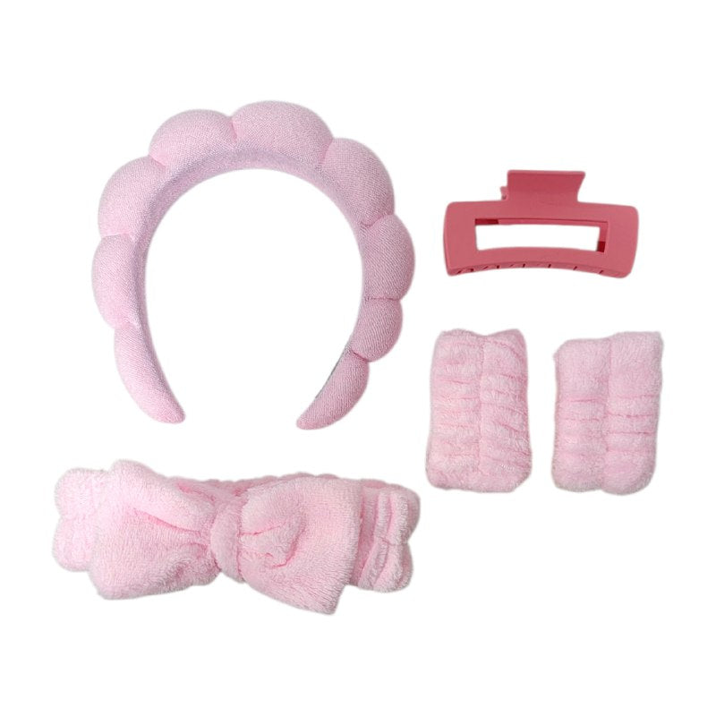 KIT DE CUIDADO FACIAL, GANCHO, DIADEMAS Y MUÑEQUERAS SKIN CARE, 5 COLORES