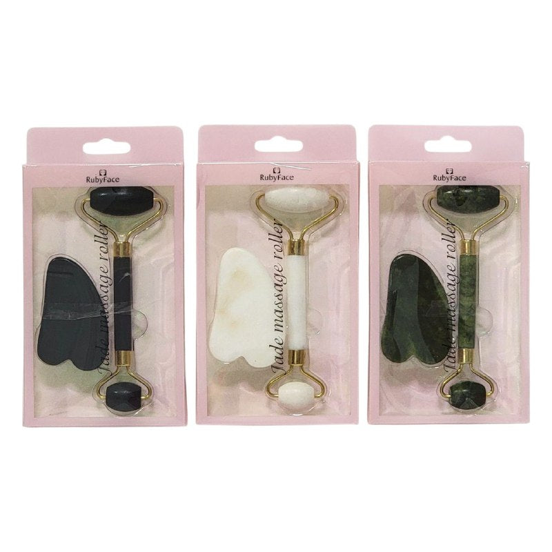 KIT DE MASAJE FACIAL RODILLO DE JADE Y PIEDRA GUA SHA 3 COLORES RUBY FACE JUDE MASSAGE ROLLER