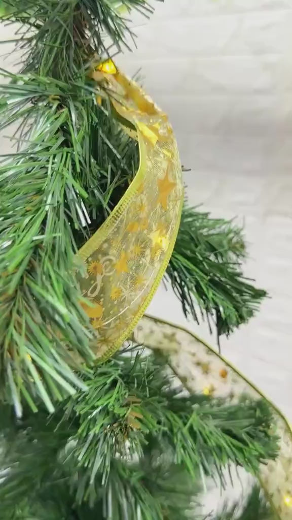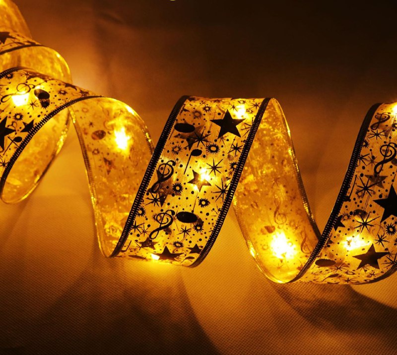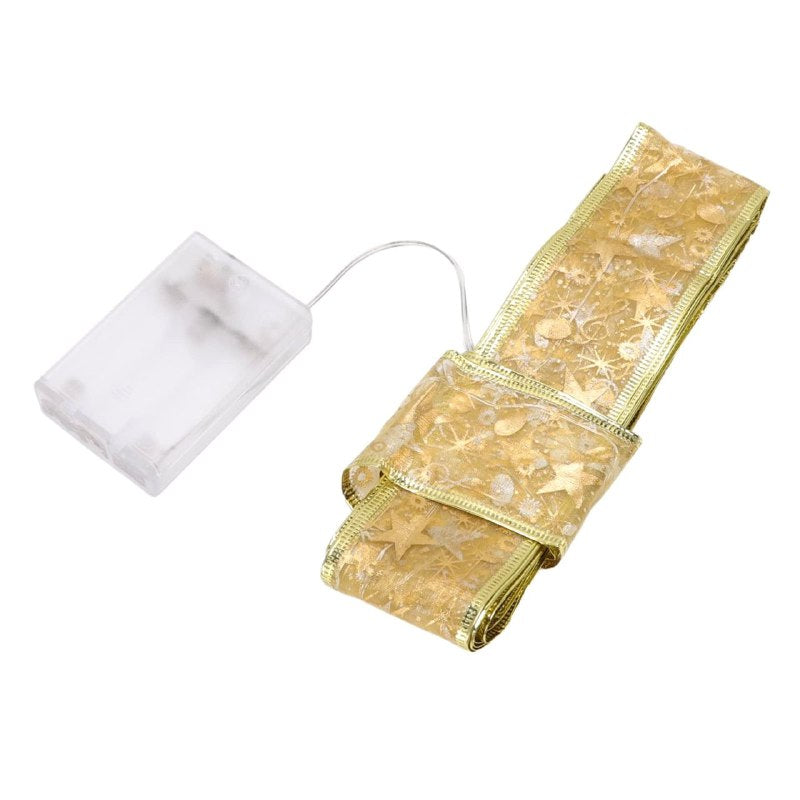 CINTA NAVIDEÑA CON LUZ LED BRILLANTE PARA DECORACION DE ÁRBOL DE NAVIDAD,INTERIOR O EXTERIOR COLOR DORADA FUNCIONA CON 3 BATERÍAS AA