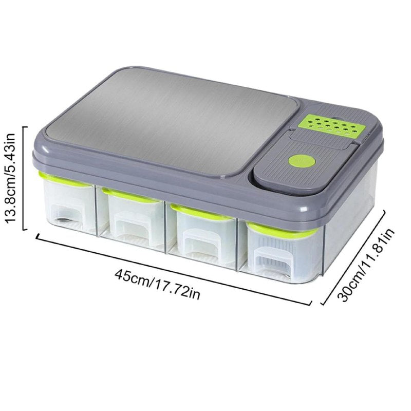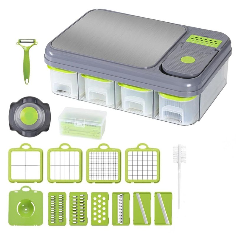 CUTTING BOARD & SLICER ESTACION MULTIUSOS DE PREPARACIÓN DE VERDURAS TODO EN 1 CON TABLA DE CORTAR INTEGRADA,PICADOR DE VERDURAS CON CUCHILLAS INTERCAMBIABLES,INCLUYE 4 COMPARTIMIENTOS UTILES PARA ALMACENAR LO QUE VAS CORTANDO,CORTADOR DE MANDOLINA,EL CONJUNTO DE CUCHILLAS MULTIFUNCIONALES EN ACERO INOXIDABLE TIENE TODO LO NECESARIO PARA CORTAR,RALLAR Y REBANAR,CUENTA CON 6 VENTAJAS PRINCIPALES MATERIAL SALUDABLE,DESHIDRATANTE CREATIVO,CORTA RÁPIDO,AHORRA TIEMPO,FUNCIÓN SIMPLE,FUNCIÓN COMPLETA INCLUYE 28 PIEZAS, MEDIDA 13X30X45CM