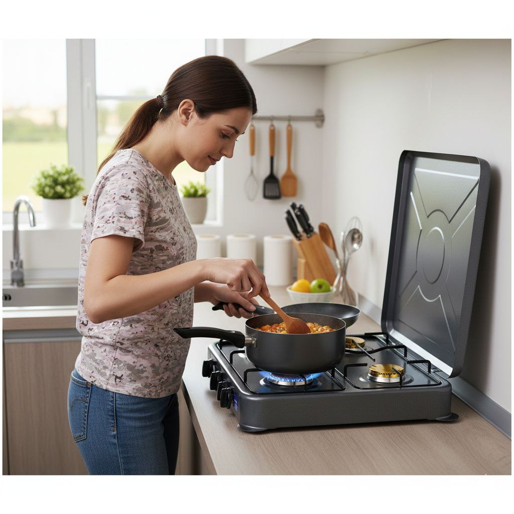 DISEÑADA PARA COCINAR DE MANERA PRÁCTICA EN ESPACIOS DONDE NO SE CUENTA CON UNA INSTALACIÓN DE COCINA INTEGRAL. PERMITE PREPARAR HASTA CUATRO PLATILLOS DE FORMA SIMULTÁNEA, OPTIMIZANDO EL TIEMPO EN LA COCINA.