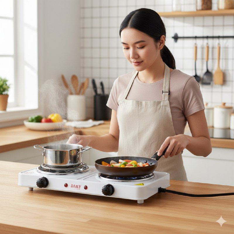 DAILY ELECTRIC DOUBLE BURNER, ESTUFA ELÉCTRICA DE DOS QUEMADORES COLOR BLANCO, CALEFACCIÓN DURADERA DE HIERRO FUNDIDO, CONTROL AUTOMÁTICO DEL TERMOSTATO, FÁCIL DE LIMPIAR, AJUSTE DE CALOR VARIABLE, PROTECCIÓN CONTRA EL SOBRECALENTAMIENTO, DOBLE PLATOS CALIENTE DE 130mm +130mm, AC110V / 60Hz, 1000 W + 1000W