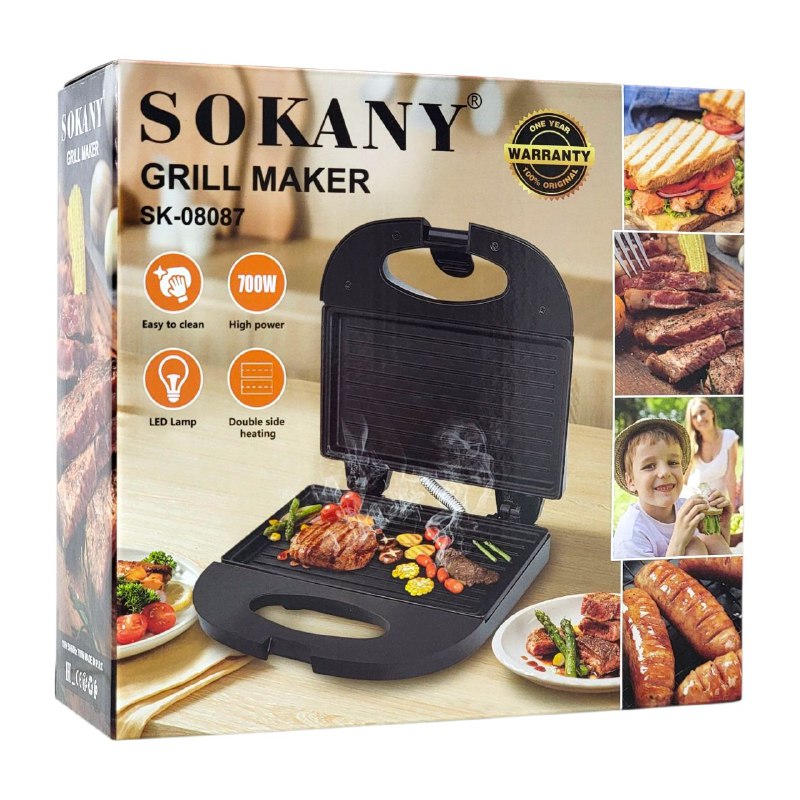 SOKANY SK-08087 PARRILLA,CALEFACCIÓN DE DOBLE CARA,FÁCIL DE LIMPIAR,700W FUERZA