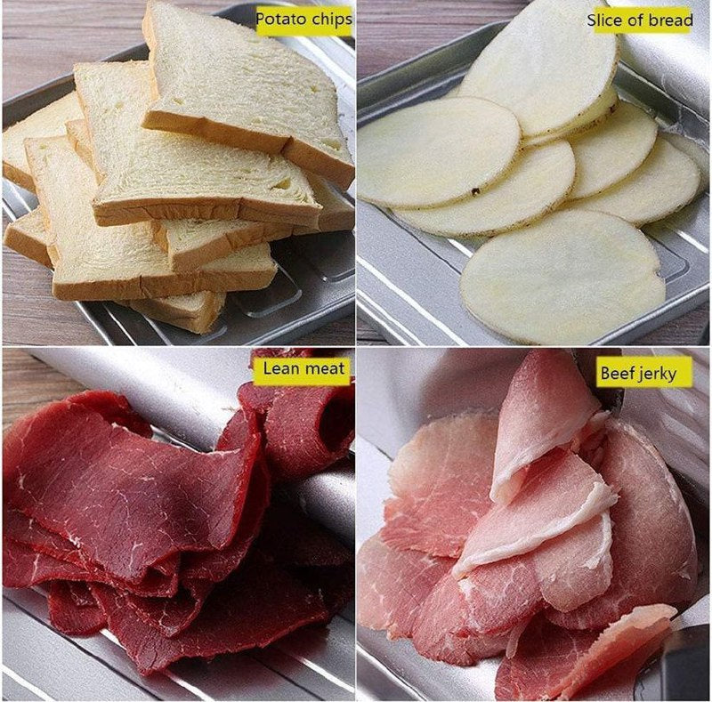 SOKANY SK-446 CORTADORA DE ALIMENTOS ELÉCTRICA BAJO NIVEL DE RUIDO,190MM DE DIÁMETRO,HOJA DE ACERO INOXIDABLE,CON PROTECCIÓN PARA LOS DEDOS,INTERRUPTOR ÚNICO CON PROTECTOR DE CUCHILLO,AJUSTE DE FINO A GRUESO,DE 0 A 15MM,EMPUJADOR DE ALIMENTOS TRANSPARENTE CON PROTECTOR DE SEGURIDAD PARA VER,ANTIDESLIZANTE
