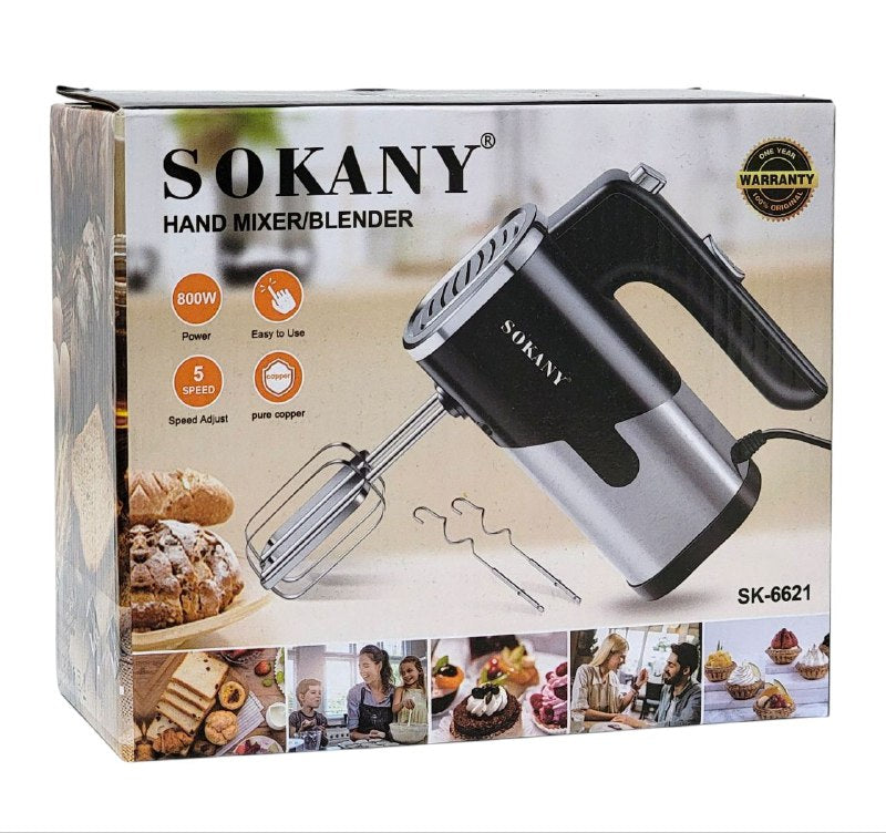 SOKANY SK-6621 BATIDORA DE MANO 5 CONFIGURACIONES DE VELOCIDAD VARIABLE Y BOTON TURBO,DISEÑO DE EXPULSIÓN DE UN BOTON Y FIJACIÓN DE BASTIDORES DE ACERO INOXIDABLE,CONVENIENTE Y SEGURO PARA DESMONTAR O LIMPIAR LOS BATIDORES DE LA BATIDORA MANUAL ELÉCTRICA CON UNA SOLA MANO,ACCESORIOS SEGUROS Y VERSATILES,800W FUERZA,FÁCIL DE USAR