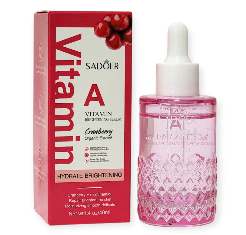 SADOER VITAMINA A SUERO ILUMINADOR CON VITAMINAS EXTRACTO ORGÁNICO DE ARÁNDANO,CALMANTE NUTRITIVO REFRESCANTE DE FÁCIL ABSORCIÓN,HIDRATACIÓN INTENSIVA DELICADA SUAVE Y TIERNA,REPARA LA BARRERA CUTÁNEA REJUVENECE LA PIEL Y APORTA LUMINOSIDAD,ARANDANO+NICOTINAMIDA REPARAR ILUMINAR LA PIEL,HIDRATANTE SUAVE DELICADO,RESTAURACIÓN MULTIFUNCIONAL HIDRATANTA Y NUTRITIVA,BLANQUEAMIENTO Y ANTIOXIDANTE,LIGERO ACLARA Y REJUVENECIMIENTO DE LA PIEL,MEJORA LA PIEL ÁSPERA Y OPACA,HACE QUE LA PIEL SEA BLANCA,BRILLANTE Y FINA CONT. 40ML
