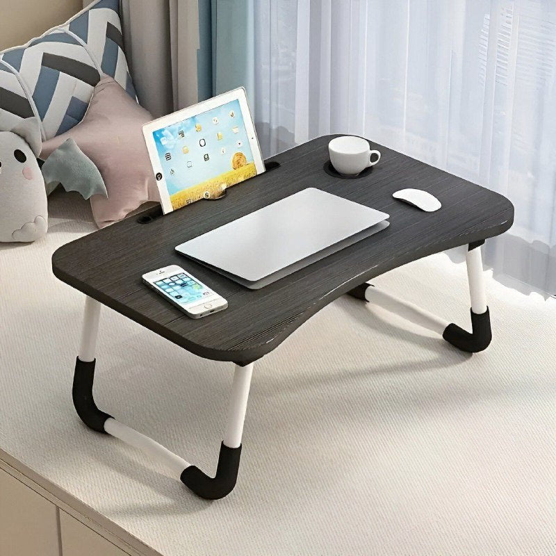MESA PLEGABLE DE MADERA PARA ORDENADOR PORTÁTIL EN SOFÁ O CAMA. BANDEJA AUXILIAR MULTIUSOS PARA DESAYUNO, LEER O TRABAJAR