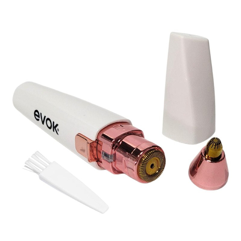 EVOK PERFILADOR ELECTRICO MULTIFUNCIONAL, REMUEVE SIN DOLOR PARA TODO VELLO FACIAL, CABEZALES INTERCAMBIALES 2 EN 1, ELIMINA LOS VELLOS DE LAS AREAS NO DESEADAS, LUZ LEDD, SEGURO AL TACTO.