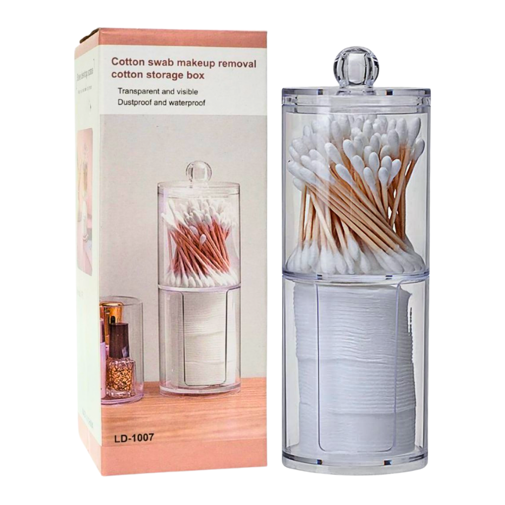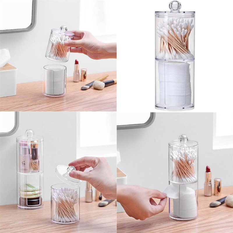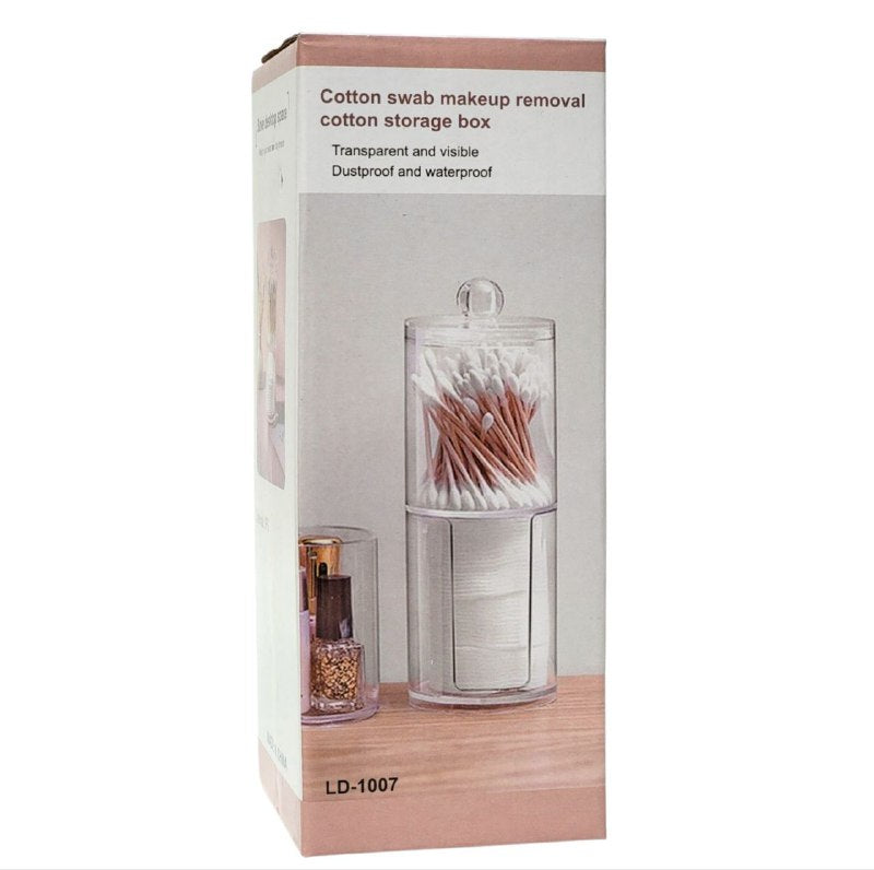 ORGANIZADOR DE ACRILICO DE 2 NIVELES PARA HISOPOS Y ALGODON DESMAQUILLANTE,TRANSPARENTE Y VISIBLE A PRUEBA DE POLVO Y AGUAMEDIDA 19X6.8X17.5CM