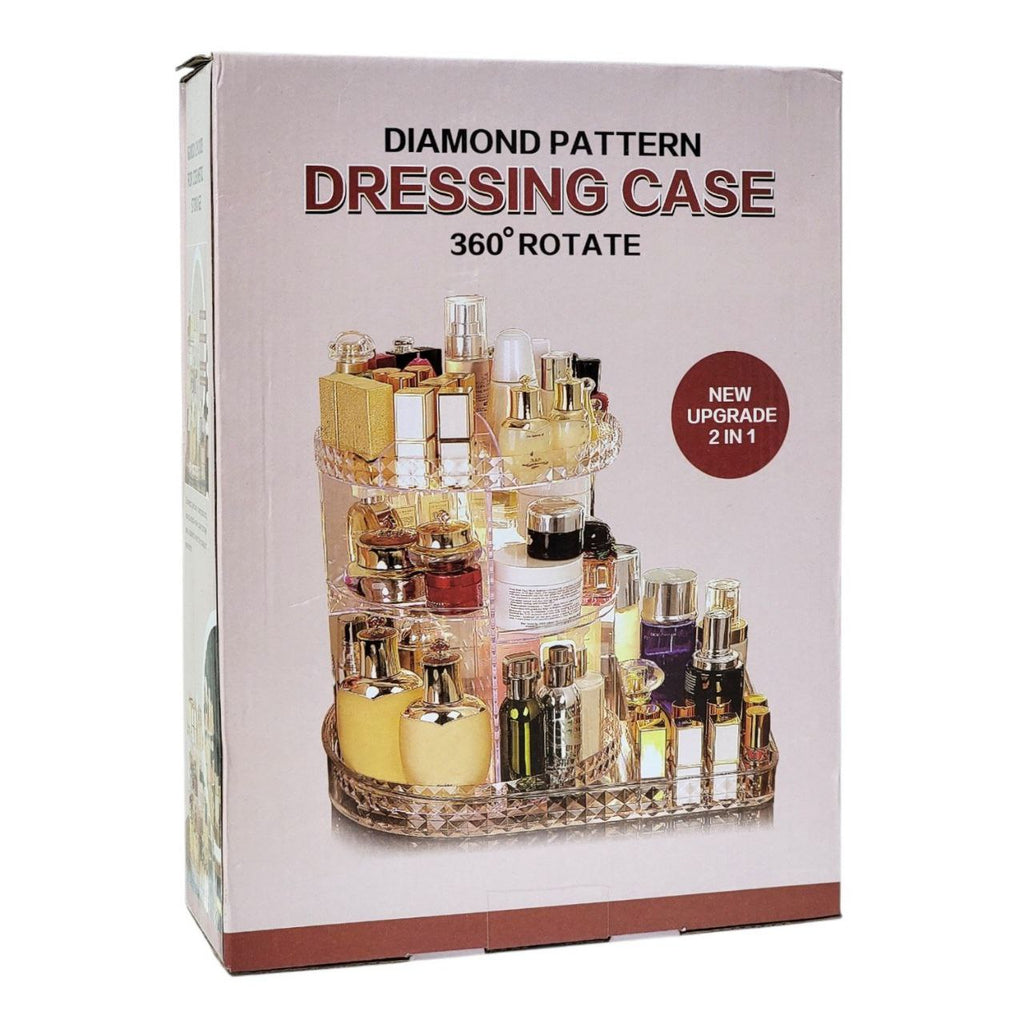 DIAMOND PATTERN DRESSING CASE 360° ROTATE - ORGANIZADOR DE MAQUILLAJE TRANSPARENTE EN FORMA DE L CON ROTACIÓN DE 360 GRADOS