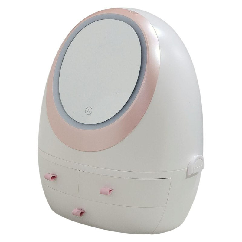 ORGANIZADOR ESTANTE DE COSMETICOS, MAQUILLAJE CON 4 COMPARTIMIENTOS, ESPEJO CON LUZ LED DE 3 MODOS DE INTENSIDAD COLOR BLANCO