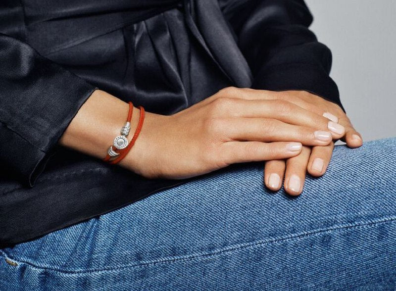 PANDORA PULSERA DOBLE DE CUERO COLOR ROJO