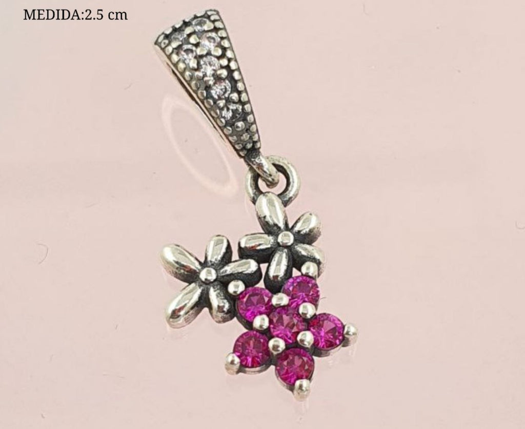 CHARM COLGANTE DE FLORES Y CIRCONES FUCSIA