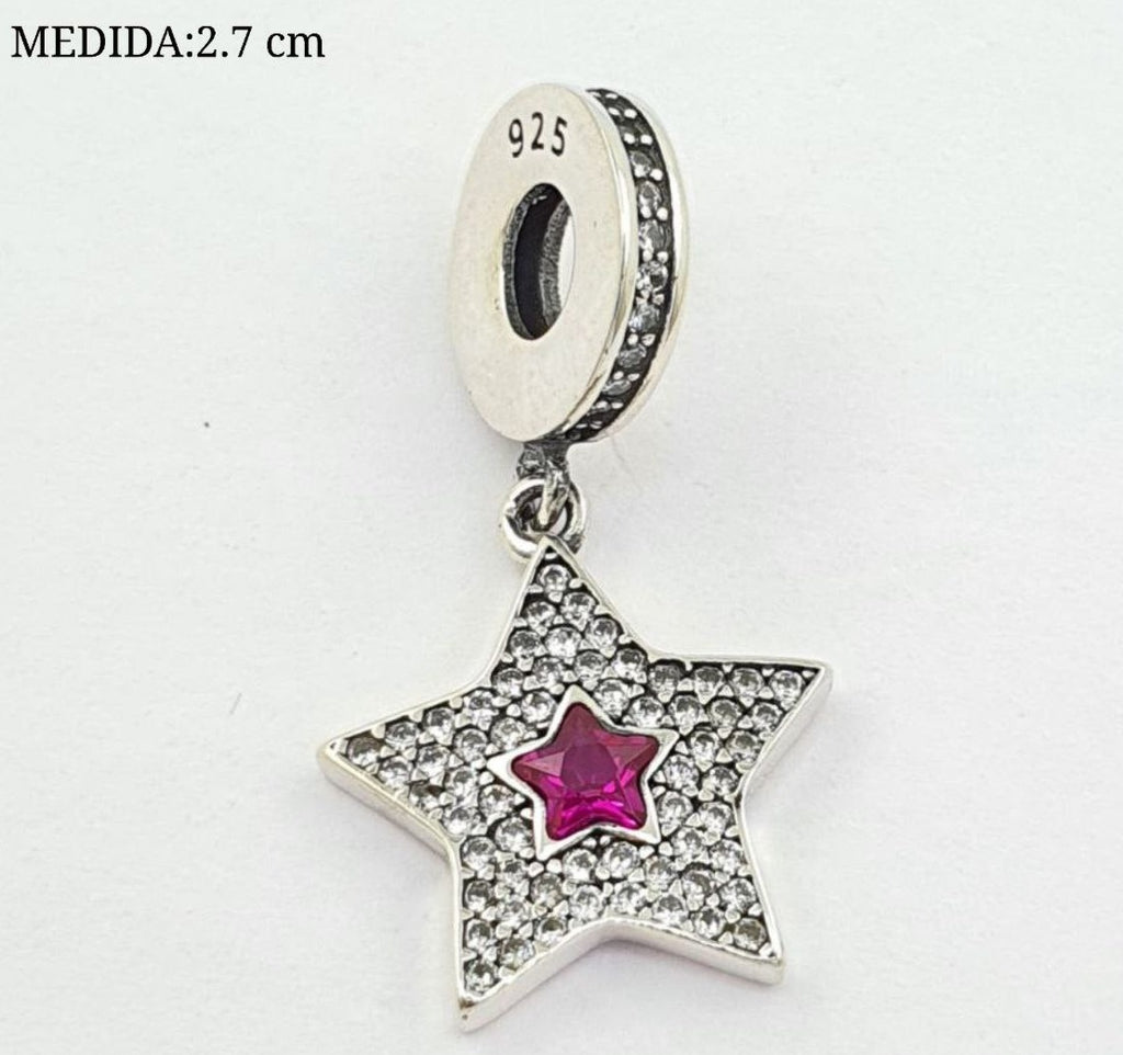 CHARM COLGANTE DE ESTRELLA CON CIRCONES TRANSPARENTES Y PIEDRA FUCSIA EN MEDIO