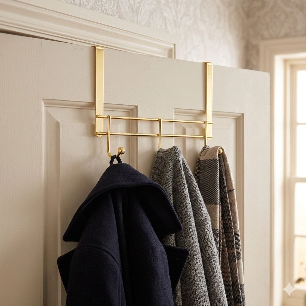 BENELI HOME - PERCHERO DE METAL PEQUEÑO DE 3 GANCHOS PARA PUERTA CON DISEÑO MINIMALISTA Y SOFISTICADO