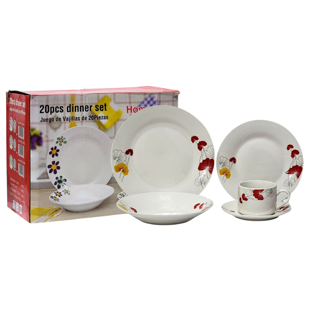HOMESTAR JUEGO DE VAJILLA SUPERFICIE MUY DURA,DIFICIL DE ROMPER,NO SE DEFORMA,FÁCIL CUIDADO INCLUYE 20 PIEZAS
