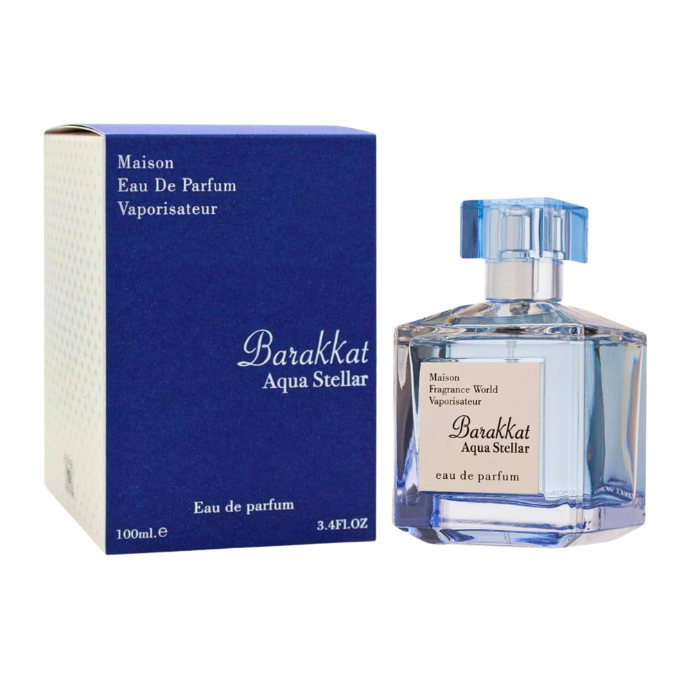 Barakkat Aqua Stellar de Fragrance World es una fragancia de la familia olfativa Floral para Hombres y Mujeres. Barakkat Aqua Stellar se lanzó en 2022. Las Notas de Salida son bergamota y grosellas negras; las Notas de Corazón son mimosa y jazmín; la Nota de Fondo es almizcle.