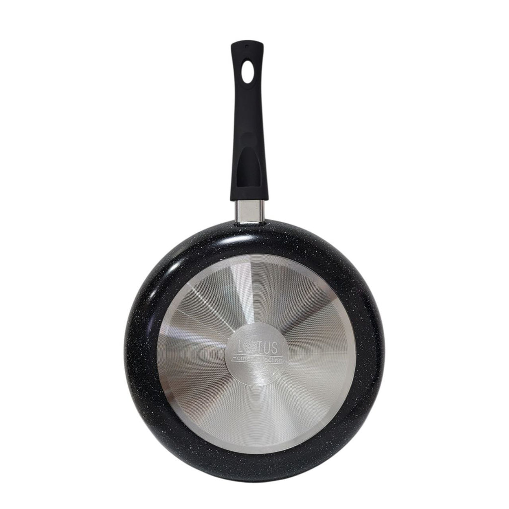 SARTÉN CON AVANZADO REVESTIMIENTO DE MÁRMOL ANTIADHERENTE. TE PERMITE COCINAR CON MENOS ACEITE, HACIENDO TUS COMIDAS MÁS SALUDABLES. GROSOR DE 2.5MM PARA UNA DISTRIBUCIÓN UNIFORME DEL CALOR. MANGO ERGONÓMICO QUE NO SE CALIENTA, BRINDÁNDOTE TOTAL SEGURIDAD.
