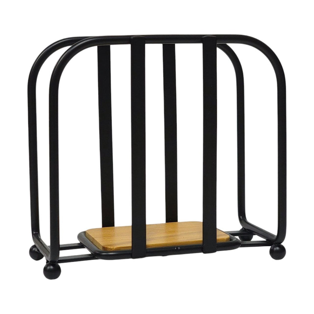 SERVILLETERO DE METAL NEGRO MATE CON BASE DE BAMBU MINIMALISTA LOTUS