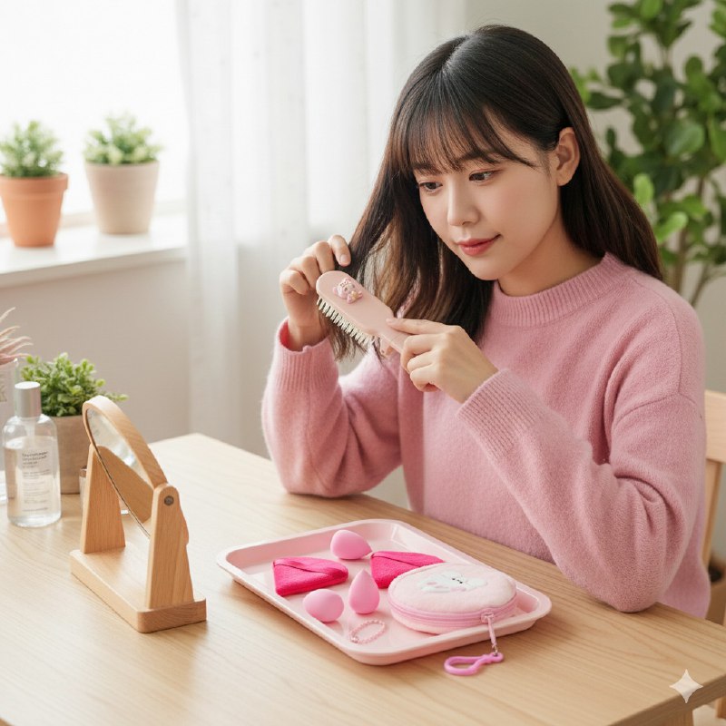 Cepillo para el Cabello: Diseñado con cerdas suaves y un tamaño compacto, ideal para desenredar y mantener tu peinado perfecto en cualquier momento del día.