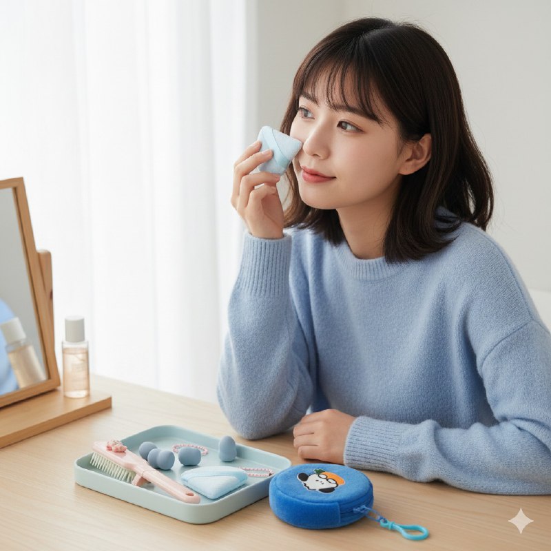 Borlas para Polvo (Powder Puffs): Herramientas esenciales para sellar el maquillaje con polvos sueltos o compactos, proporcionando un efecto de piel de porcelana.