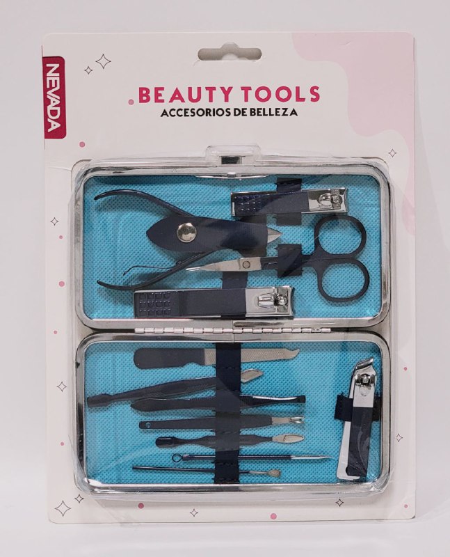 NEVADA BEAUTY TOOLS ACCESORIOS DE BELLEZA SET DE 12 PIEZAS DE MANICURA CON ESTUCHE