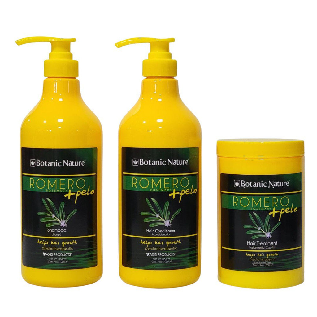 SET DE CHAMPÚ, ACONDICIONADOR Y TRATAMIENTO CAPILAR DE ROMERO+PELO.