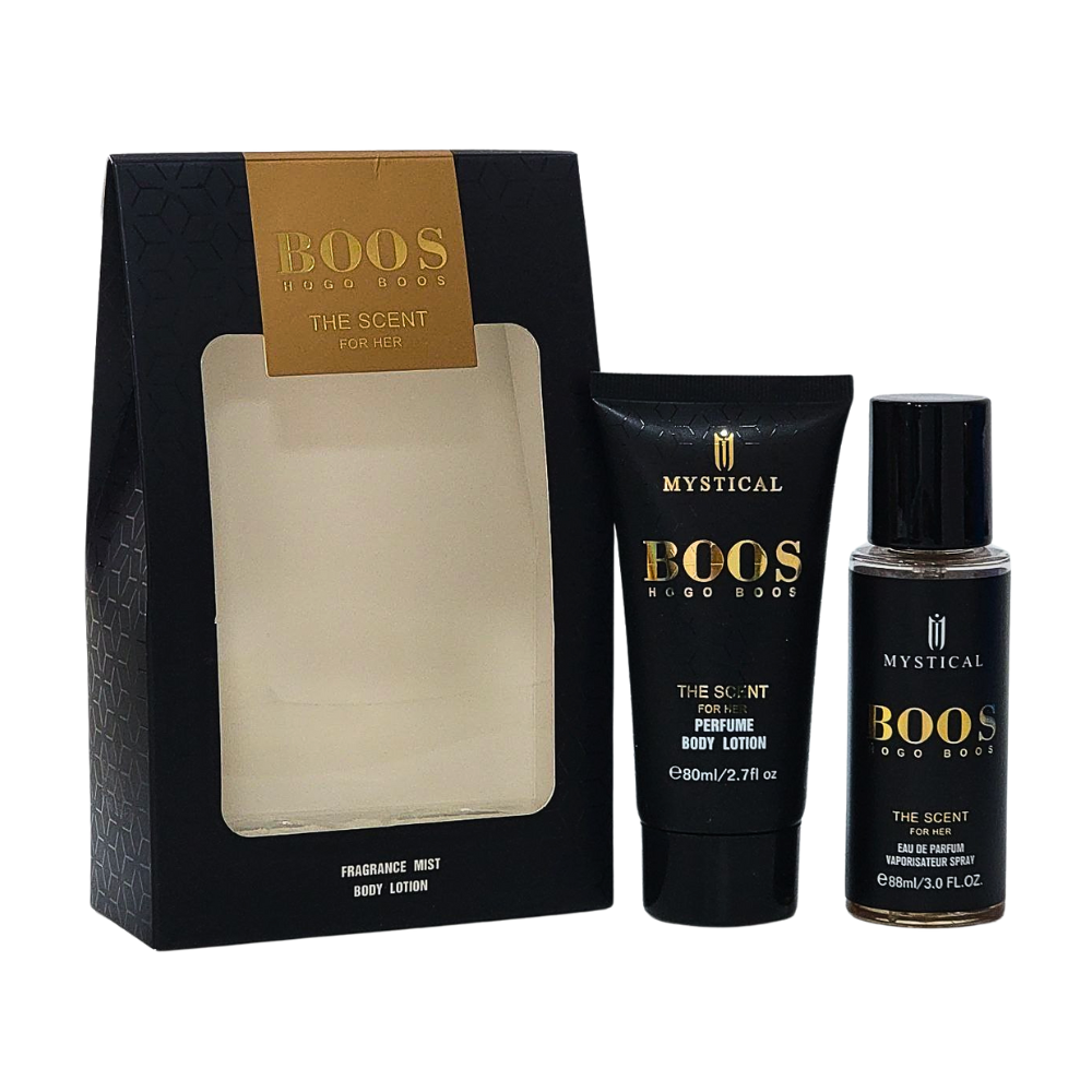 SET DE SPLASH PARA DAMA MYSTICAL HOGO BOOS THE SCENT FOR HER SPLASH 88ML, BODY LOTION 80ML (M)