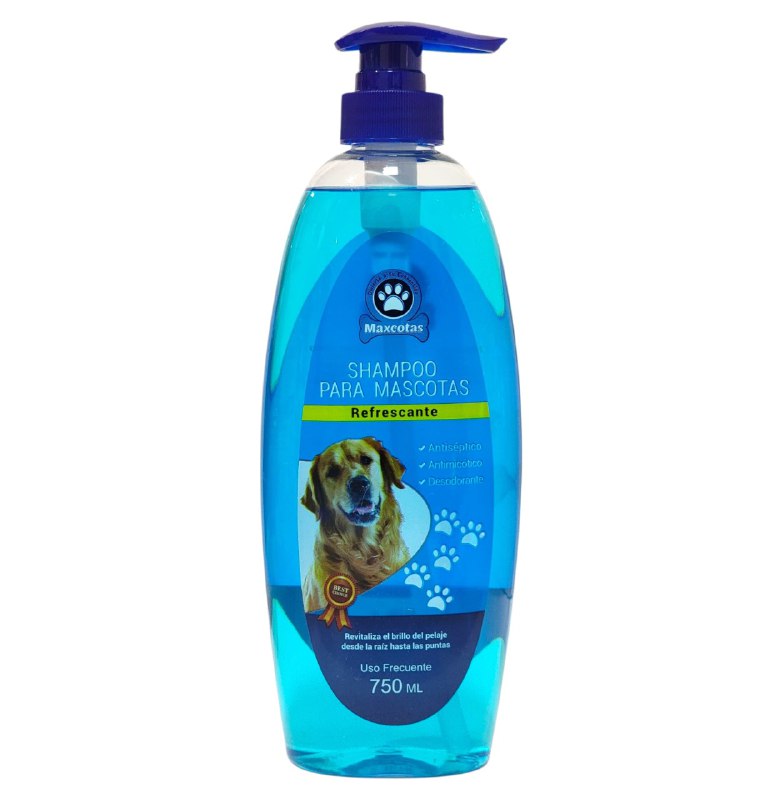 MAXCOTAS DIVIERTE A TU CONSENTIDO SHAMPOO PARA MASCOTAS REFRESCANTE,ANTISEPTICO,ANTIMICOTICO,DESODORANTE,REVITALIZA EL BRILLO DEL PELAJE DESDE LA RAÍZ HASTA LAS PUNTAS IDEAL PARA PERROS Y CACHORROS ,CON ACEITE Y EXTRACTO VEGETAL,NO PRODUCE LÁGRIMAS CONT. 750ML