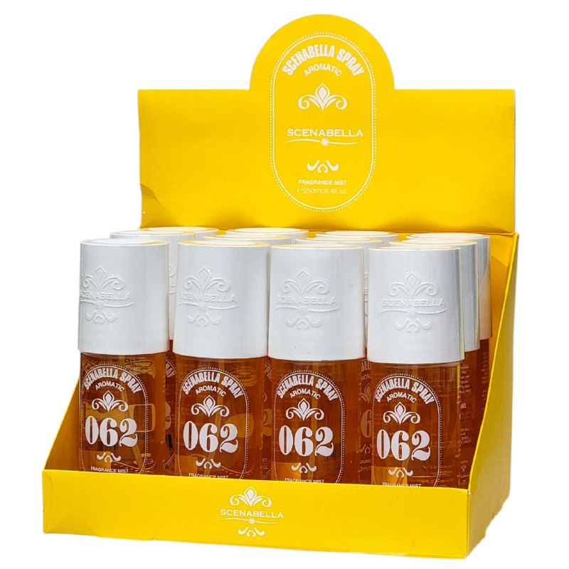 SCENABELLA SPRAY AROMATIC 062 SPRAY PERFUMADO PARA EL CUERPO Y CABELLO EXPERIMENTA LA MAGIA DE SCENABELLA Y DESCUBRE LOS AROMAS PERDECTOS QUE COMPLEMENTAN TU ESTILO NOTAS VAINILLA, PISTACHO, JAZMÍN, ALMENDRA, CARAMELO, SÁNDALO CONT. 250ML