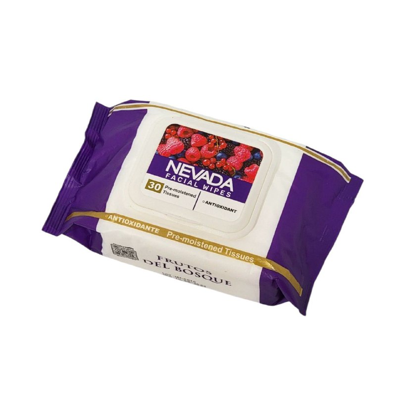 NEVADA FACIAL WIPES TOALLITAS HÚMEDAS LIMPIADORAS FACIALES DE FRUTOS DEL BOSQUE CONT. 30 TOALLITAS