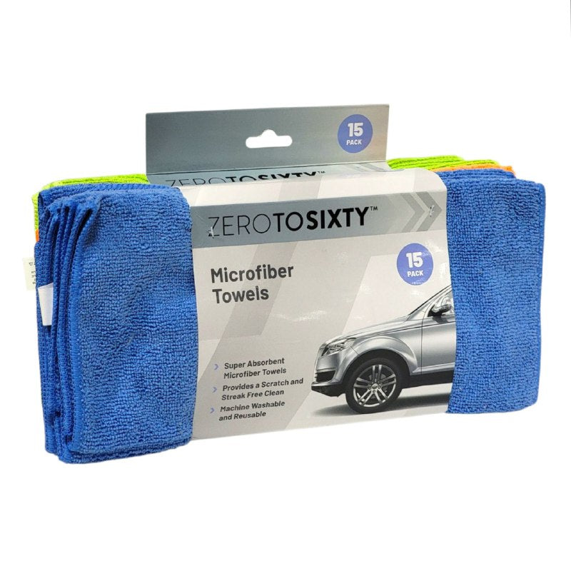 ZERO TO SIXTY TOALLAS O PAÑOS DE MICROFIBRA PARA TU AUTOMOVIL, TOALLAS SUPER ABSORBENTES, TOALLA LAVABLE Y REUTILIZABLE, DISPONIBLE EN 3 COLORES CONT. 15 PCS