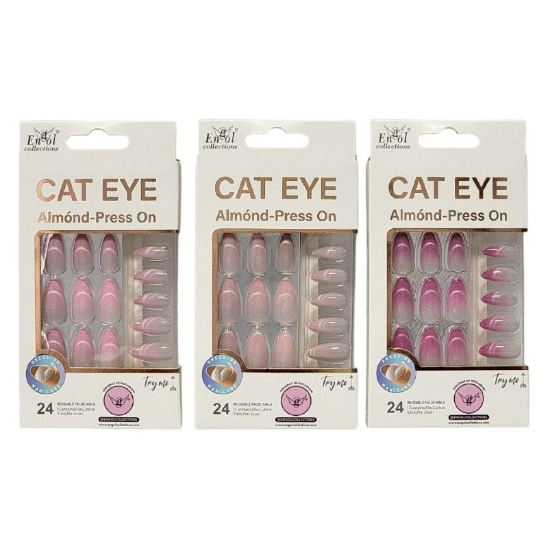 ENGOL COLLECTIONS CAT EYE ALMOND-PRESS ON SET DE 24 UÑAS POSTIZAS REUTILIZABLES INCLUYE LIMA,PALILLO PARA CUTÍCULAS,PRE-PEGAMENTO