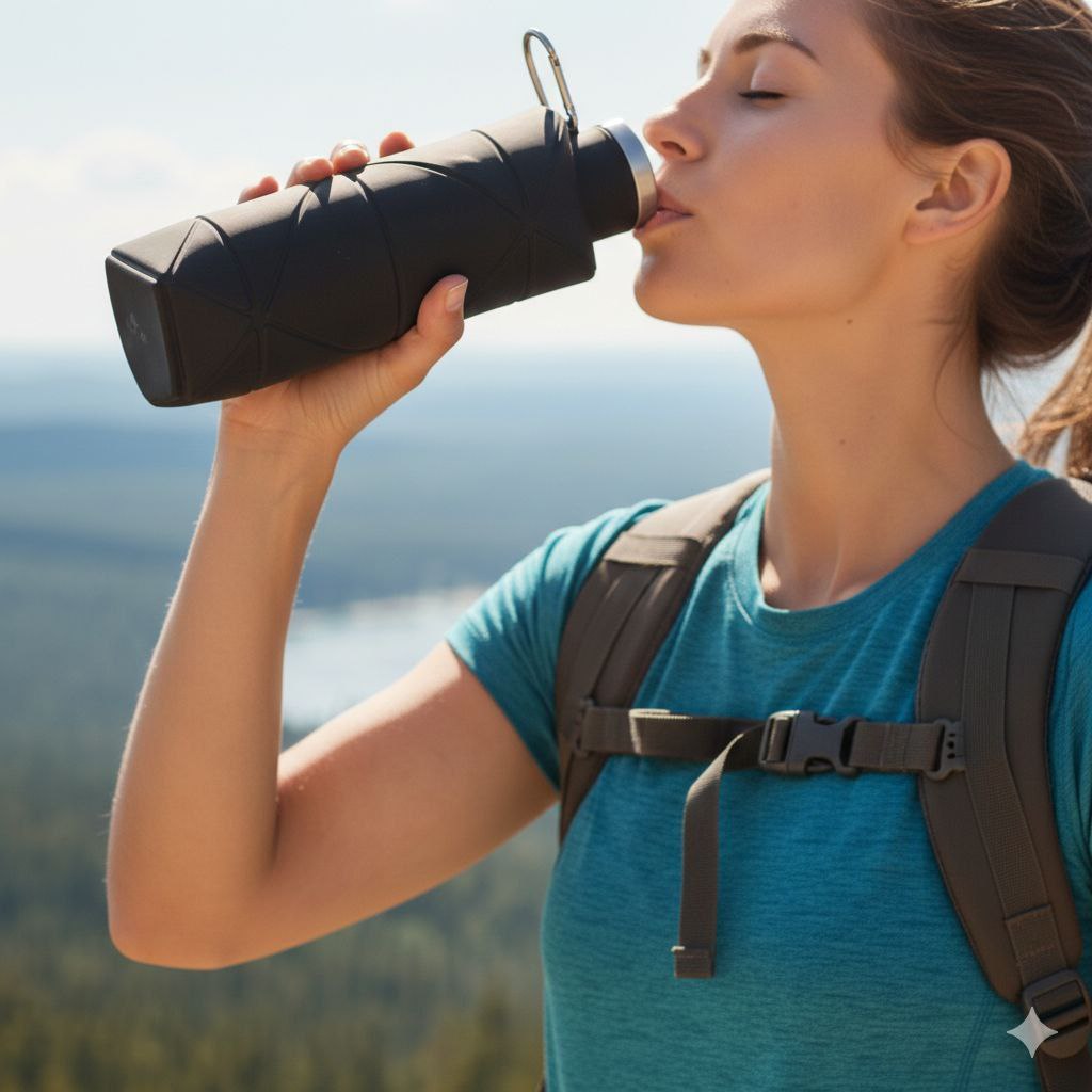 SILICONE COLLAPSIBLE WATER BOTTLE - BOTELLA DE AGUA DE SILICONA PLEGABLE