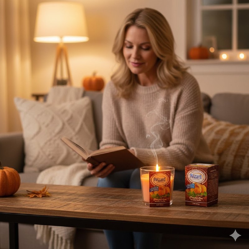 WIZARD SCENTED CANDLE PUMPKIN SPICE, VELA AROMÁTICA DE CALABAZA Y ESPECIAS DE LA MARCA WIZARD ESTÁ DISEÑADA PARA CREAR UNA ATMÓSFERA CÁLIDA Y FRESCA. ESTA VELA ESTÁ HECHA PARA OFRECER UN AROMA DE TEMPORADA CON UN TIEMPO DE DURACIÓN DE HASTA 25 HORAS.CONT.85G