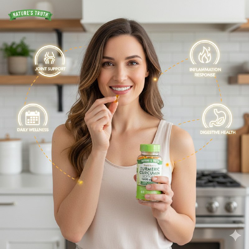 NATURE'S TRUTH TURMERIC CURCUMIN SOFTGELS, CÁPSULAS BLANDAS DE CÚRCUMA Y CURCUMINA, EXTRACTO DE JENGIBRE, ASTRÁGALO Y PIMIENTA NEGRA, APOYA LA SALUD DE LAS ARTICULACIONES Y REDUCIR LAS MOLESTIAS RELACIONADAS CON LA INFLAMACIÓN, ACTÚA COMO UN POTENTE ANTIOXIDANTE, AYUDANDO A COMBATIR LOS RADICALES LIBRES Y PROTEGER LAS CÉLULAS DEL DAÑO, SE USA COMÚNMENTE PARA MANTENER LAS ARTICULACIONES FLEXIBLES Y SALUDABLES, LO QUE CONTRIBUYE A LA MOVILIDAD GENERAL, CONT. 60 CAPSULAS