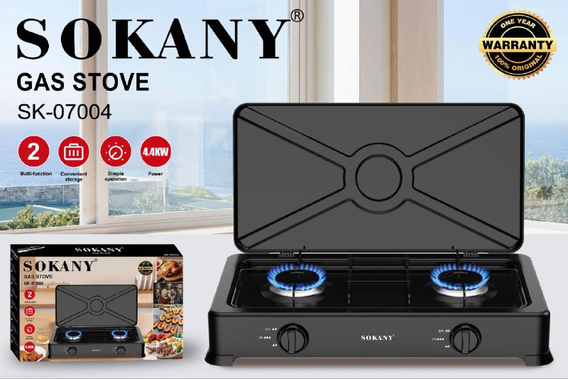 SOKANY SK-07004 ESTUFA DE GAS 4.4 KW DE FUERZA,OPERACIÓN SENCILLA, DE 2 HORNILLAS